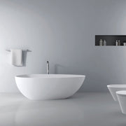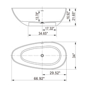 66.9" x 34" x 21.7" Freestanding Solid Surface Soaking Bathtub For Bathroom - Matte White