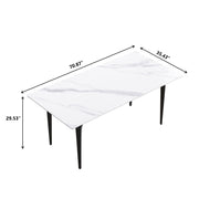 70.87" Modern Artificial Stone White Straight Edge Black Metal Leg Dining Table, Can Accommodate 6-8 People - White / Black