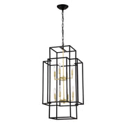 8 Light Metal Lantern Tiered Pendant Hanging Light Fixtures, Industrial Farmhouse Adjustable Height Chandeliers For Dining Room Hallway Foyer Entryway (E12 Bulbs Not Included) - Matte Black / Gold