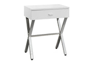 Accent Side Table, Storage Drawer, Glossy Contemporary And Modern - White