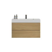 Alice - U042-Alice36-106 Bathroom Vanity With Black Sink, Large Storage Wall Mounted Floating Bathroom Vanity For Modern Bathroom, One-Piece Black Sink Basin Without Drain - Oak / White