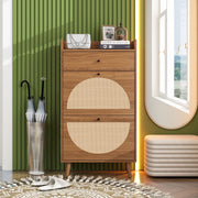 Allen - Rattan 2 Door 1 Drawer Cabinet Shoe Rack For Entrance, Double Layer - Walnut