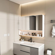 Aluminium Medicine Cabinet Mirror, With 3 Colors LED Light And Defogging Function - Khaki