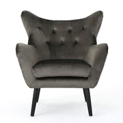 Modern Velvet Arm Chair With Tufted Wingback Design - Gray
