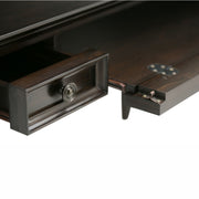 - Features two side drawers with metal drawer glides and flip down pull-out keyboard tray