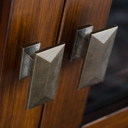 - Contemporary Design includes clean angle edged top, square, slightly tapered legs and rectangular antique knobs.