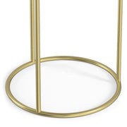 - Hand-finished metal base in Gold and two contrasting Marble tabletops, one in Grey, the other in Natural.