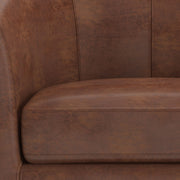 - Features curved back, sides with top stitching detail, solid wood legs and removable high density foam seat cushion