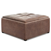 Avalon - Square Coffee Table Storage Ottoman - Distressed Umber Brown