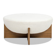 Bali - Round Upholstered Ottoman With Natural Base - Ivory White