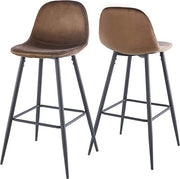 Bar Stools (Set of 2) Velvet Barstool Modern Counter Bar Height Chair With Back, Sturdy Metal Legs & Footrests, Island Stool For Kitchen Bar - Brown