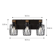 3 Light Bathroom Vanity Light, Wall Sconce With Cage Shade - Black