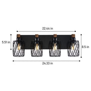 4 Light Bathroom Vanity Light, Wall Sconce With Cage Shade - Black