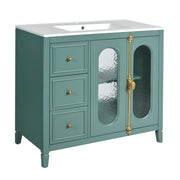 Bathroom Vanity With 3 Drawers And 2 Soft Close Doors Cabinet - Lake Green