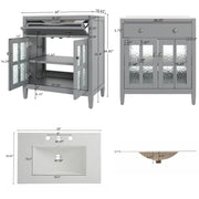 Bathroom Vanity With Sink, Adjustable Shelf & Tip Out Tray - Gray