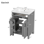 Bathroom Vanity With Sink, Soft Close Doors, Flip Drawer, Double Layer Door Shelves - Gray