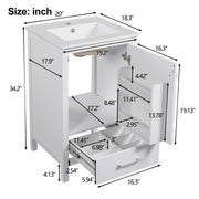 20" Bathroom Vanity With Sink, Soft Close Drawers, Door Organizer, Divider Drawer, Adjustable Foot Pads - White