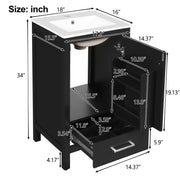 18" Bathroom Vanity With Sink, Soft Close Drawers, Door Organizer, Divider Drawer, Adjustable Foot Pads - Black