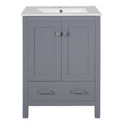24" Bathroom Vanity With Integrated Undermount Sink, 2 Doors 1 Drawer, Soft Close Hinges, - Gray