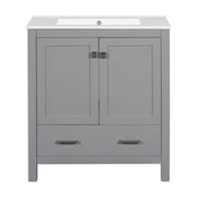 Bathroom Vanity With Single Sink, Combo Cabinet Undermount Sink, Bathroom Storage Cabinet With Two Doors And A Drawer, Soft Closing, Multifunctional Storage, Solid Wood Frame - Gray