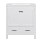 Bathroom Vanity With Single Sink, Combo Cabinet Undermount Sink, Bathroom Storage Cabinet With Two Doors And A Drawer, Soft Closing, Multifunctional Storage, Solid Wood Frame - White