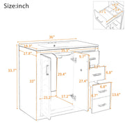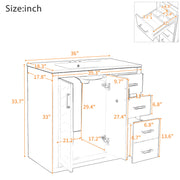 36" Bathroom Vanity With Sink Combo, Storage Cabinet, Freestanding Set With 3 Drawers & Soft Closing Doors - White
