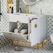 Bathroom Vanity With Sink, Storage Cabinet Soft Closing Door And Drop Down Compartment - White