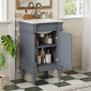 Bathroom Vanity With Sink, Storage Cabinet With Door, Freestanding Small Space Design, Drop In Sink - Gray