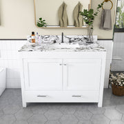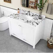 - Ample Storage: Multiple drawers and shelf-lined cabinets provide organized space for bathroom essentials