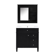 Bathroom Vanity With Top Sink, Freestanding Storage Cabinet With 2 Doors And 3 Drawers, Mirror Cabinet Included - Black