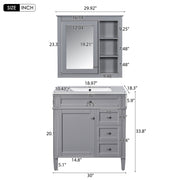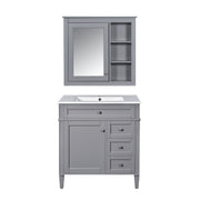 Bathroom Vanity With Top Sink, Freestanding Storage Cabinet With 2 Doors And 3 Drawers, Mirror Cabinet Included - Gray