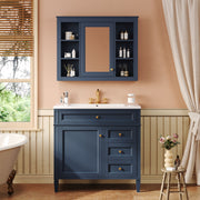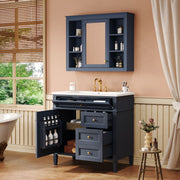 Bathroom Vanity With Top Sink, 2 Drawers And Tip Out Drawer, Mirror Cabinet With 6 Open Shelves - Blue