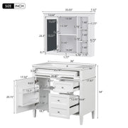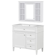 Bathroom Vanity With Top Sink, Storage Cabinet With Mirror, 2 Doors, 3 Drawers, 6 Open Shelves - White