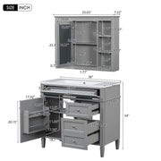 Bathroom Vanity With Top Sink, Storage Cabinet With Mirror, 2 Doors, 3 Drawers, Soft Close Hinges - Gray