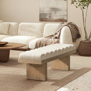 - Textured Upholstery: The bench is covered in soft boucle upholstery, which adds texture and warmth to any area it is placed in, enhancing the space's coziness and appeal.