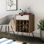 Beverage Storage Stand With 12 Bottle Cubbies And Drawer - Brown Oak