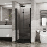 Bifold - Frameless Glass Shower Door 1 / 4" Tempered Clear Glass Pivot Swing Panel - Black