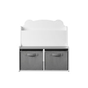 Bookshelf With Storage Bins, Bookcase With Book Display Shelf And 2 Bins, Cute Bear Shaped Backboard, Toy Organizer - White