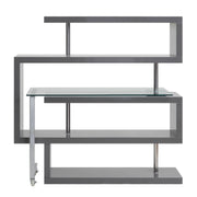 Buck II - Clear Glass, Chrome High Gloss Writing Desk With Shelf - Gray