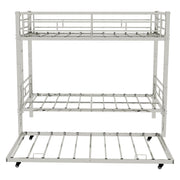 - Durable Metal Frame: Sturdy metal construction with reinforced slats supports up to 400 lbs on each bunk.