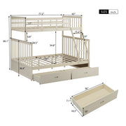Wooden Twin Over Full Bunk Bed With Storage Drawers Safety Guard Rails And Ladder - Cream