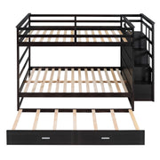 Full Over Full Bunk Bed With Twin Size Trundle And Staircase - Espresso