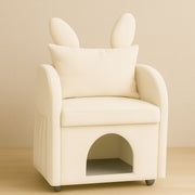 Bunny Ear Pet Friendly Armchair With Hidden Pet House With Storage Pocket For Bedroom & Living Room - Beige