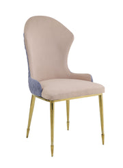 - Unique Color Combination: The chair features a stylish blend of tan and lavender fabric, offering a fresh and inviting look suitable for any dining space.