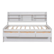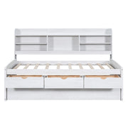 Twin Size Captain Bed With Built In Bookshelves, 3 Storage Drawers, And Trundle - White Washed