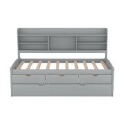 Twin Size Captain Bed With Built In Bookshelves, 3 Storage Drawers, And Trundle - Gray