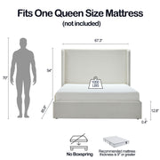 Carmen - Queen Minimalist Upholstered Wingback Bed Frame With High Headboard - Ivory