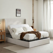 Caron - Queen Size Upholstered Wingback Bed With Adjustable Base Bundle Set - Ivory