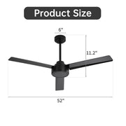 52" Outdoor Ceiling Fan Without Light, 3 Abs Blades Farmhouse Ceiling Fan With Remote Control 6-Speed Reversible Dc Motor For Living Room, Bedroom, Kitchen - Black