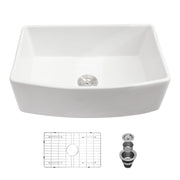 Sink 30" Apron Front Single Bowl With Arch Edge For Kitchen - White